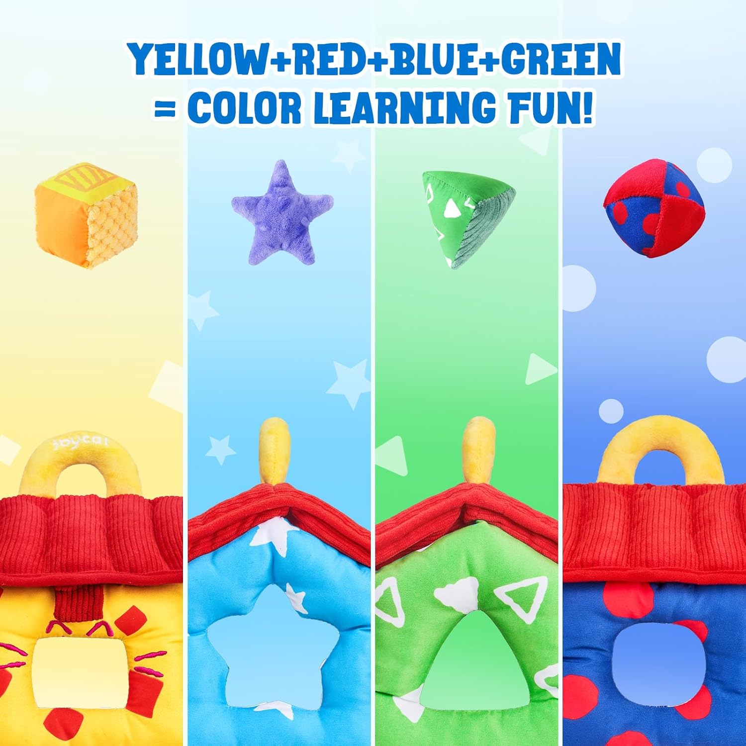 15-in-1 Educational Dinosaur Busy Book: Engage your toddler in real-world learning with our Dinosaur-Themed Busy Book, featuring 15 interactive activities designed to teach essential life skills. From buttoning and snapping to tying shoes, this busy book promotes the development of fine motor skills, problem-solving abilities, logical thinking, and hand-eye coordination. It's a fun and educational tool that keeps your little ones absorbed while building important life skills in an engaging way. Perfect for toddlers who are eager to learn through hands-on play MY FIRST SHAPE SORTER HOUSE: This enchanting playset includes a cozy fabric house and 4 plush shapes. Meticulously designed with love, these soft baby toys are more than adorable companions - they're a passport to sensory discovery and early learning adventures