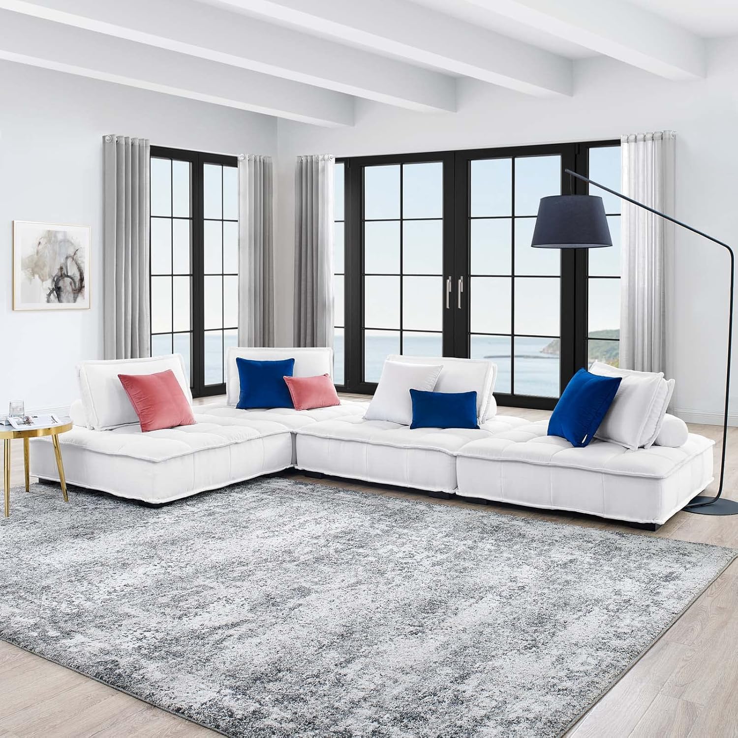 Sprawl out amidst comfort and style on the Saunter Tufted Fabric Armless Chair. With square biscuit tufting, French piping detail, and soft polyester upholstery, this sectional sofa armless chair brings tailored style to your living space or lounge area with its charming low profile silhouette. A removable bolster pillow supporting a seat back cushion offers a comfortable place to rest while watching TV, relaxing, or entertaining. Dense foam padding and a sinuous spring support system grant a premium seating experience for all occasions. This sectional sofa piece rests atop L-shaped rubberwood legs with non-marking foot caps. Armless Chair Weight Capacity: 300 lbs.